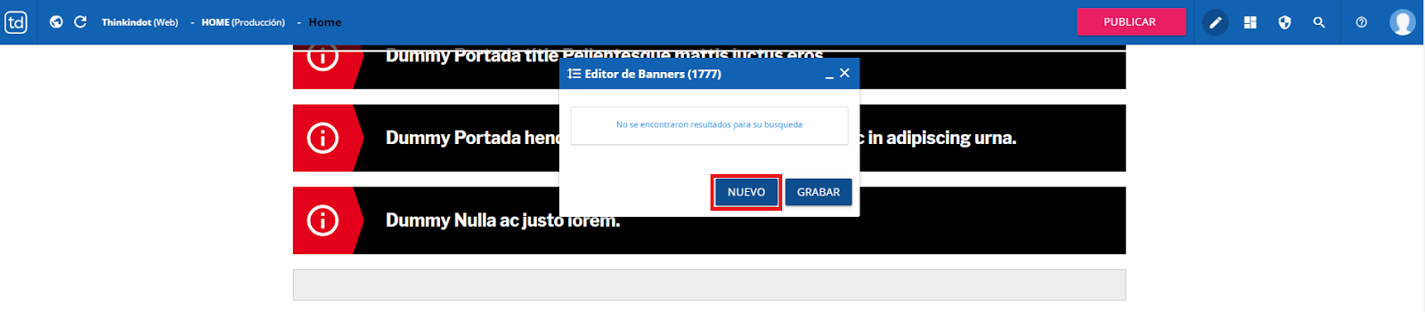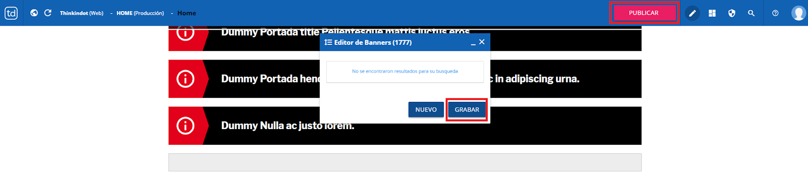 Luego, cierra el Editor de Banners y vuelve a Portada - Página Home