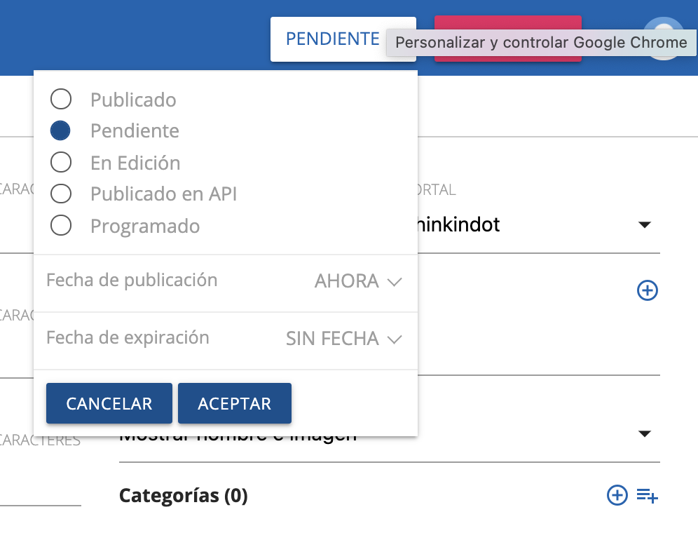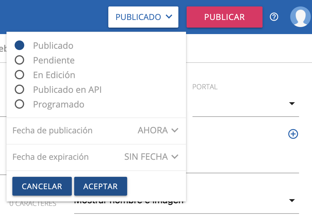 Cómo? Desde el mismo editor de nota! solo que ahora, se muestra en un botón aparte. Los estados son los mismos de siempre, que repasamos a continuación: