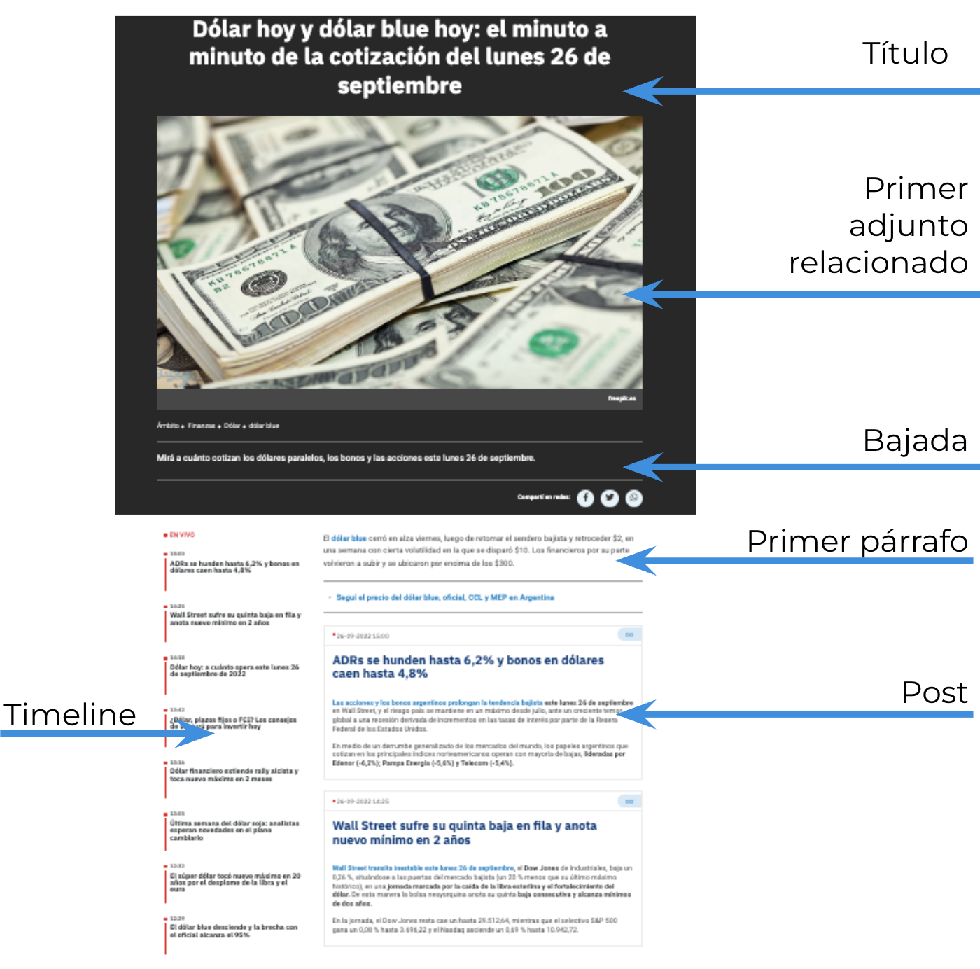 • Es un formato de nota que permite incluir actualizaciones para coberturas en vivo. Estas tienen forma de post y cada una muestra la hora y fecha de publicación del post y pueden contener texto, imágenes, tuits, etc.