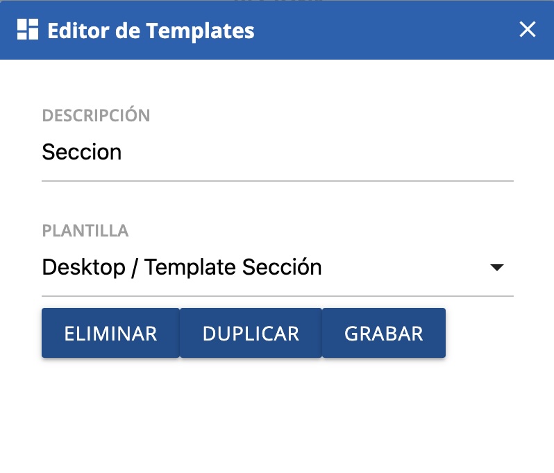 En el Administrador de Templates haz click en nuevo y se va a desplegar un pop-up, allí deberás colocar el nombre del template y seleccionar el estilo del template.