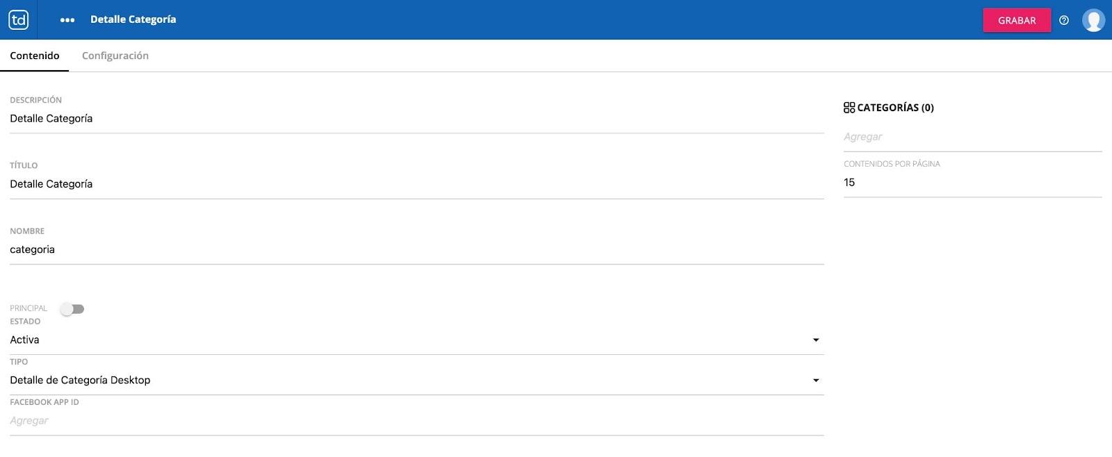 • Descripción: en este campo, deberás completar el nombre de la página. En este caso la página tendrá el nombre Detalle Categoría Desktop.