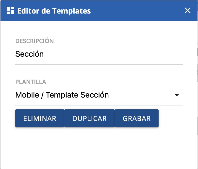 • Nombre:  este campo se utiliza para armar la URL de la página. Es importante que se respete el formato de escritura, no se pueden utilizar ni mayúsculas, ni espacios ni caracteres extraños. En este caso, se pondría el mismo nombre que está en la versión desktop, seguido de _mobile (guión bajo mobile, Por ejemplo para “Detalle Categoría Mobile” el campo nombre será “seccion_mobile” o “categoria_mobile”