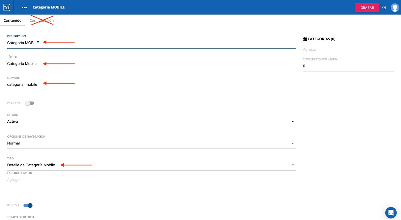 • Descripción: En este campo, irá el mismo nombre que categoría desktop, solo que al final agregas Mobile.