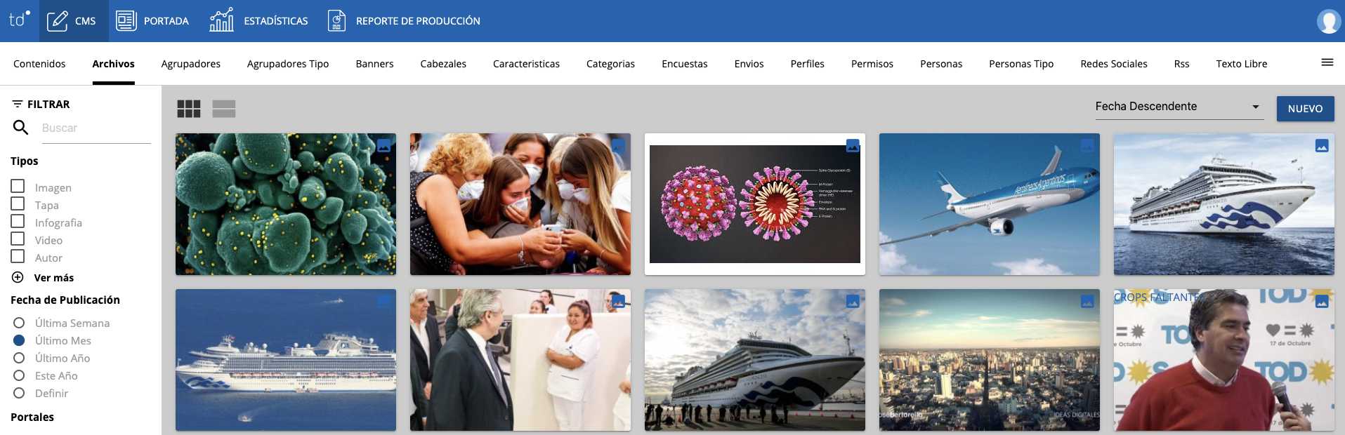 Filtro Portales: En el caso que estes administrando un medio con múltiples portales, este filtro será de mucha ayuda, ya que permite buscar y encontrar archivos en base al portal donde ha sido guardado / generado. Para utilizar este filtro, deberás definir ir el Portal donde quieres que el buscador acote la búsqueda.