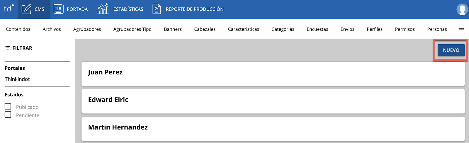 Pasante: sólo pude generar contenido dejándolo en estado “pendiente”, no tienen acceso a eliminar contenido ni publicar el sitio.