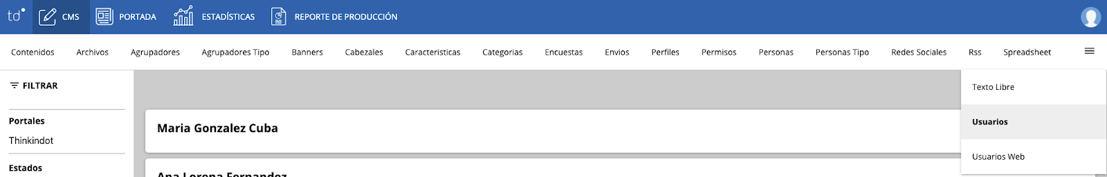 Para administrar un usuario, deberás acceder a la aplicación CMS e ingresar en el Administrador de Usuarios tal como se visualiza en la imagen.