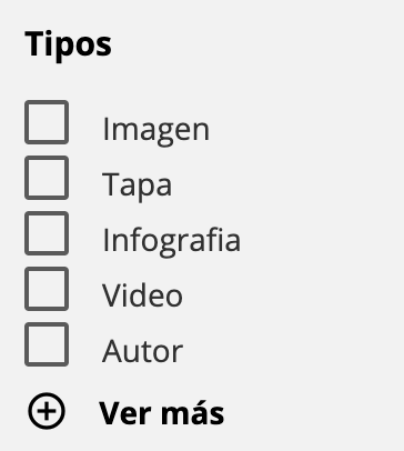 Filtro por Tipos de Archivos: Thinkindot® reconoce distintos elementos de una nota como “archivos”, es decir que una imagen, un video, un texto o incluso una firma de autor son considerados “archivos”. Este filtro, permite buscar y encontrar archivos en base a estos elementos. Para acceder a este filtro, deberás clickear el que más se ajuste a tu necesidad de búsqueda.