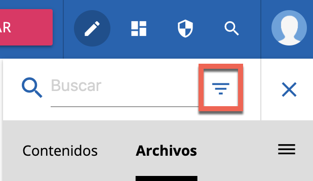Para acceder a los filtros deberás ingresar a la aplicación “PORTADA”, posicionar el mouse en la lupa (ubicada arriba a la derecha) y abrir el “administrador de archivos” que es sobre el cual realizarás la búsqueda.