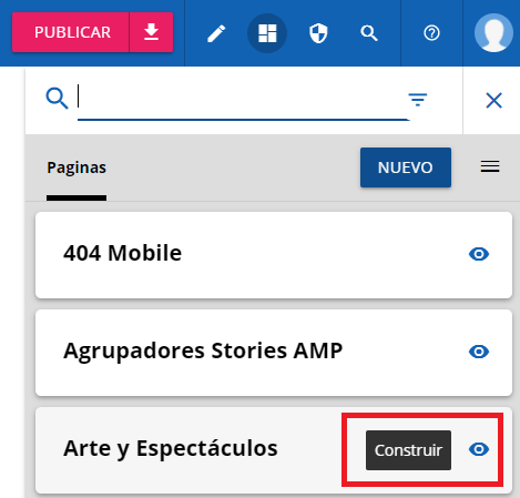 Una vez allí, deberás seleccionar y editar la página donde se encuentra el objeto que deseas replicar. Para ello deberás hacer click en el “ojo” (construir).