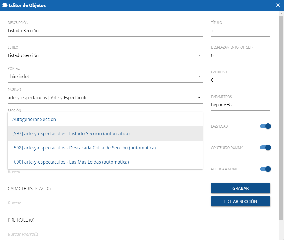 Entramos al editor de objetos, para tomar el ID del objeto que se encuentra en el campo Sección. Una vez que obtengas ese número, deberás cerrar el editor de objetivo haciendo clic en X
