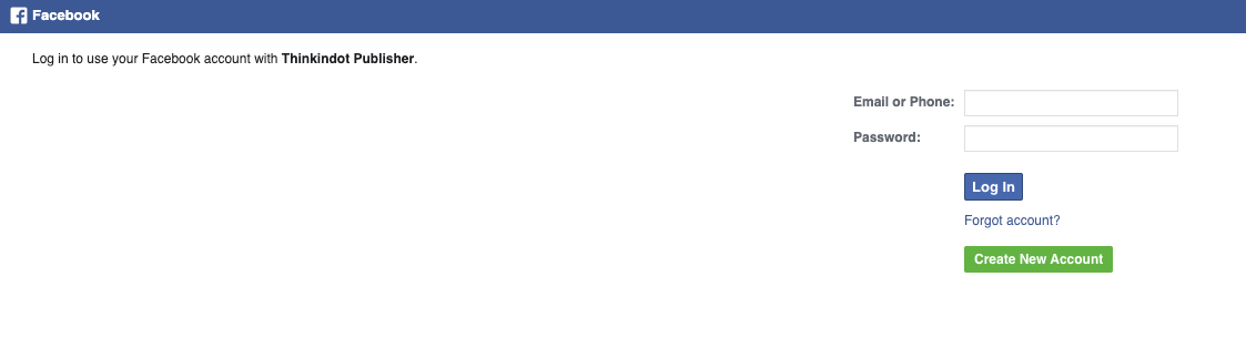 2. Ingresar las credenciales de la cuenta de Facebook que tengan permisos de publicación para compartir el contenido generado en Thinkindot®.