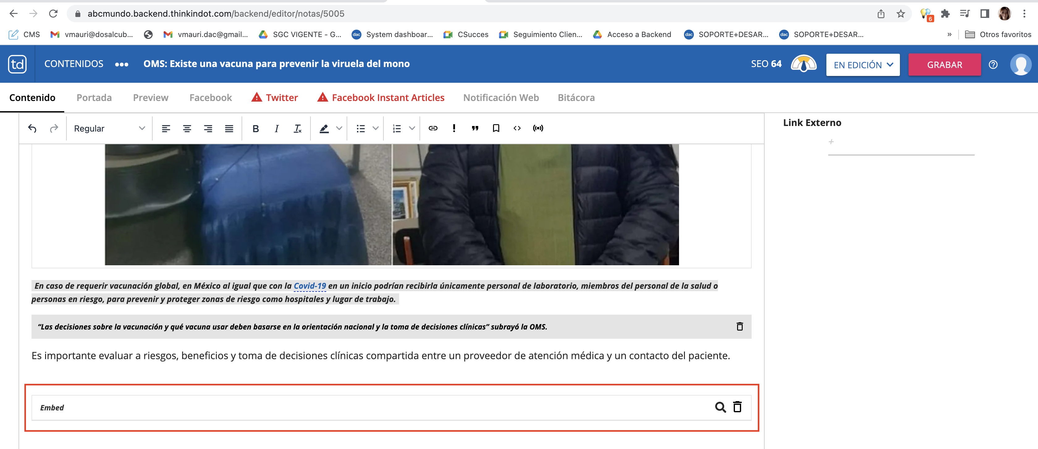 En esta guía explicaremos detalladamente cómo insertar embeds en el cuerpo de la nota para enriquecer tus contenidos.