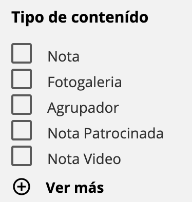 Agrupador: Permite buscar y encontrar contenidos en base a las keywords o palabras clave que posee la nota. Para utilizar este filtro, deberás escribir la sección a la que pertenece el contenido que desea encontrar.