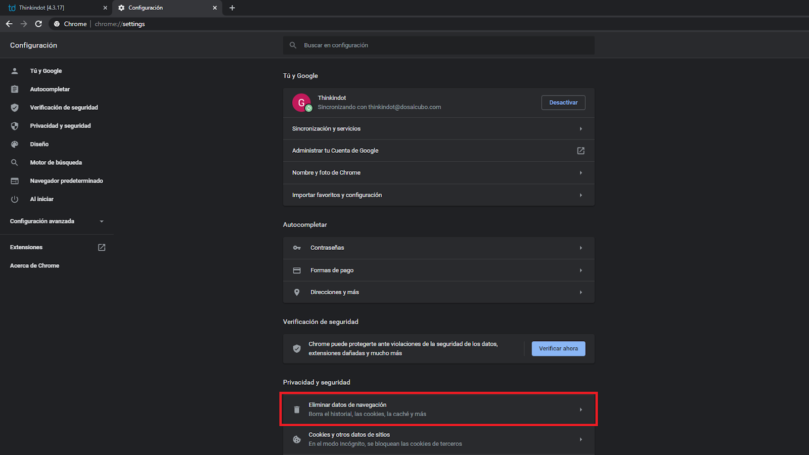 Nota: También se puede acceder a la configuración desde: chrome://settings/clearBrowserData