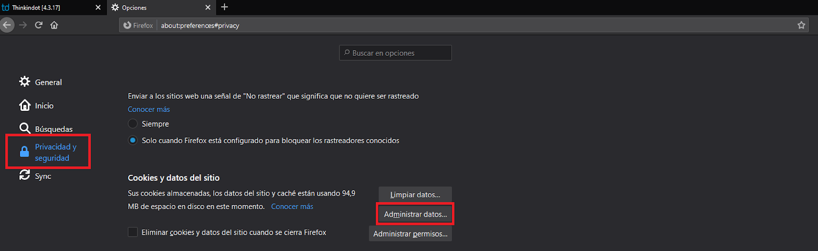 Nota: También se puede acceder a la configuración desde: about:preferences#privacy