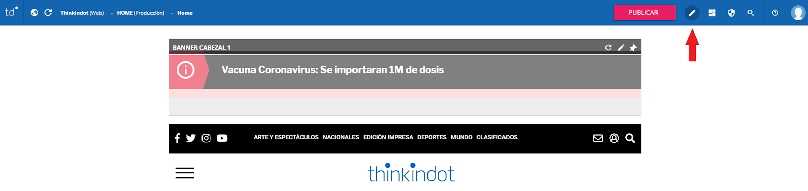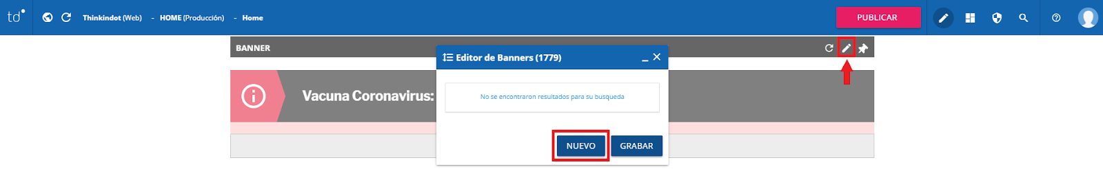 Clickea en el lápiz ubicado la esquina superior derecha de la barra gris “BANNER”, para que se despliegue una ventana donde visualizarás los banners ubicados en ese espacio.