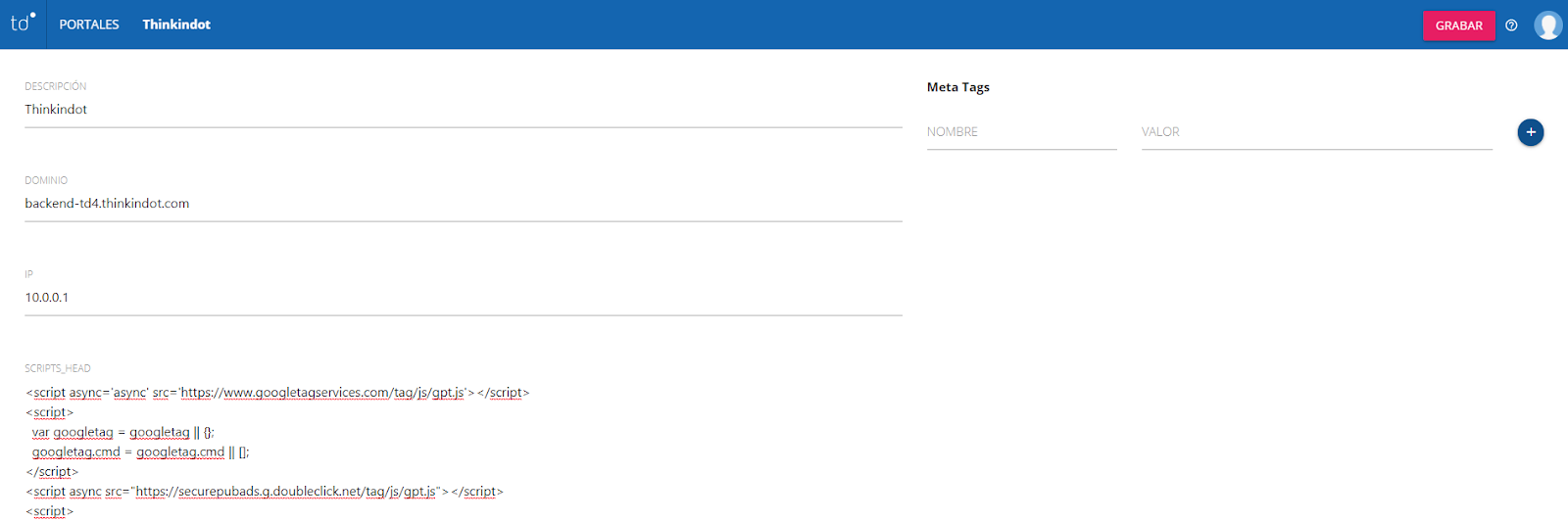 Ese es uno de los códigos que deberás pegar en el campo correspondiente de Thinkindot® CMS. Guárdalo y presiona el botón azul “Enviar”.