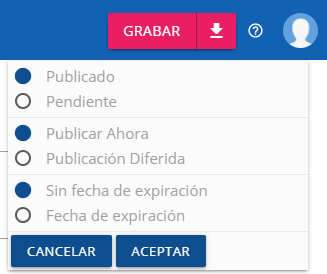 Al finalizar, clickea en la flecha superior derecha al lado de “Grabar”, y asegurate de que el estado del banner se encuentre en “Publicado”